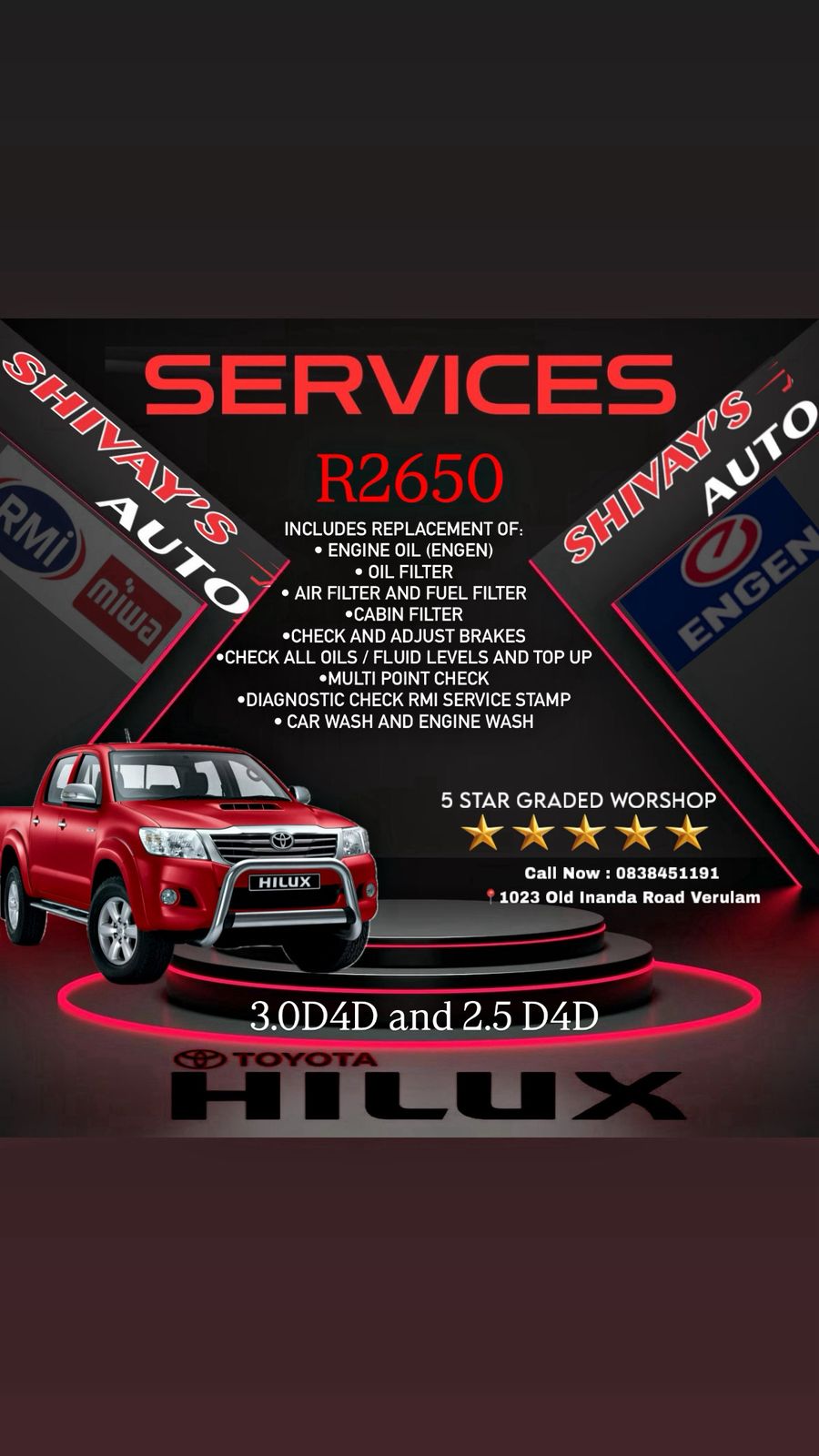 Aircon regas and servicing, headlight restoration, steering rack repairs, petrol injection servicing, and wiper/globe replacements.